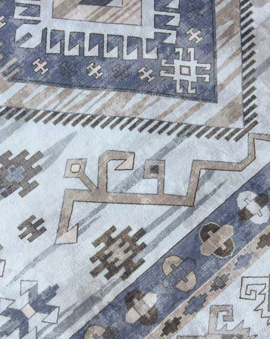 Kilim Teppich Beige Blau – Ethno Muster im Boho-Stil für Wohnzimmer