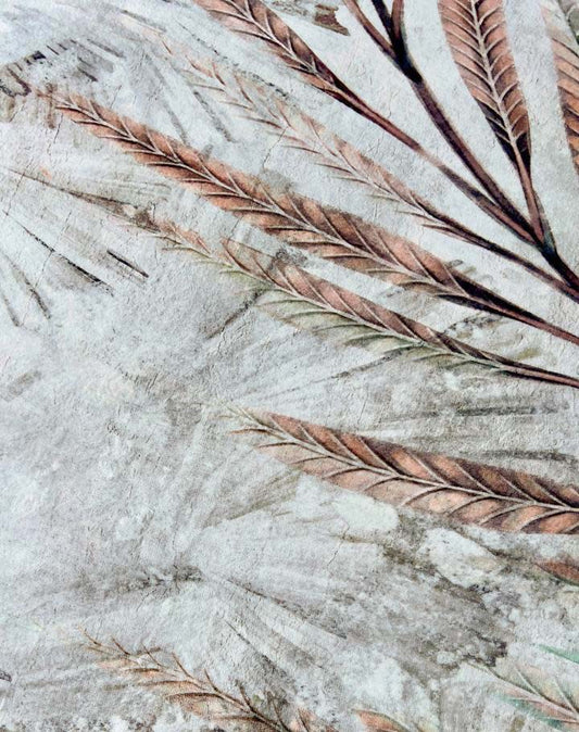 Teppich mit tropischem Blättermuster Grau Beige – Moderner Naturstil für Wohnzimmer