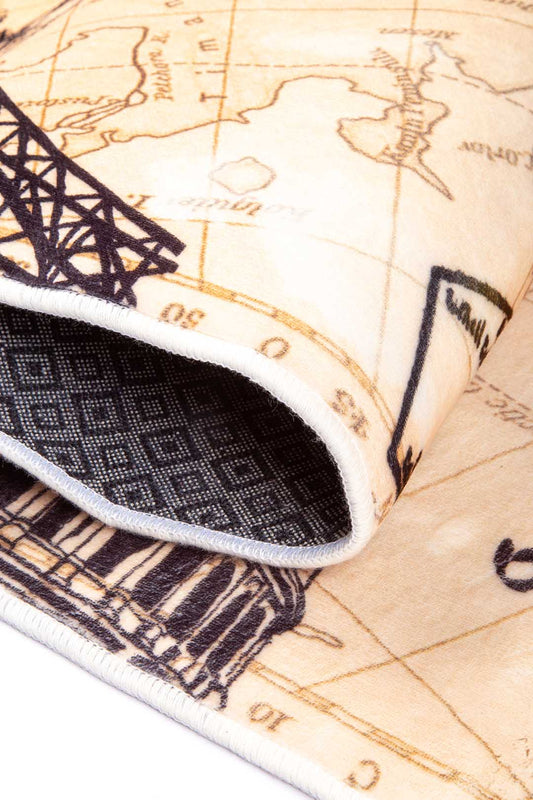 Kinderteppich Weltkarte Reise – Teppich mit berühmten Sehenswürdigkeiten in Beige