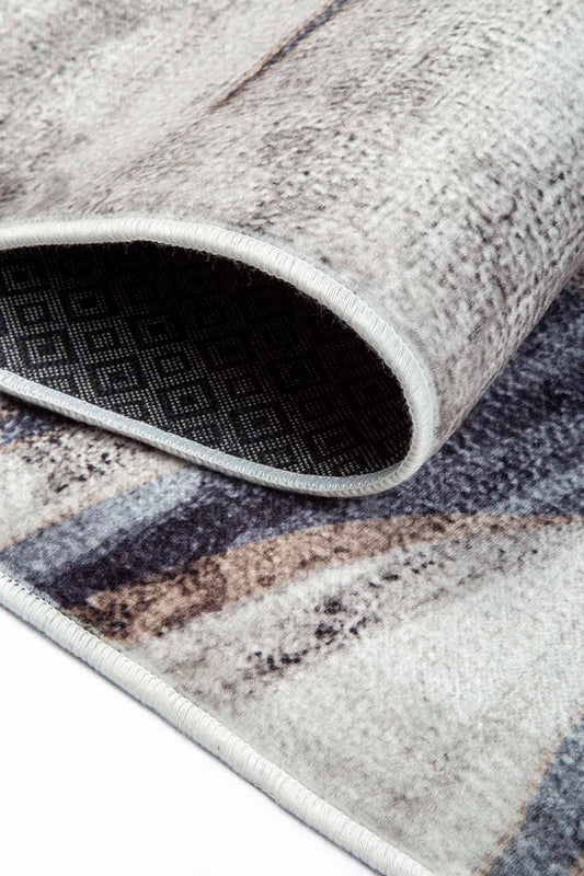 Moderner Teppich Grau Blau Braun – Abstraktes Design mit Struktur-Effekt