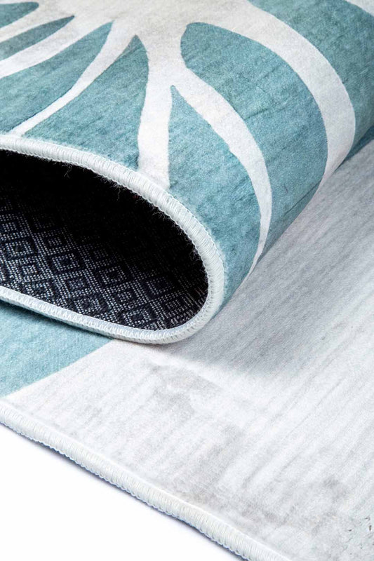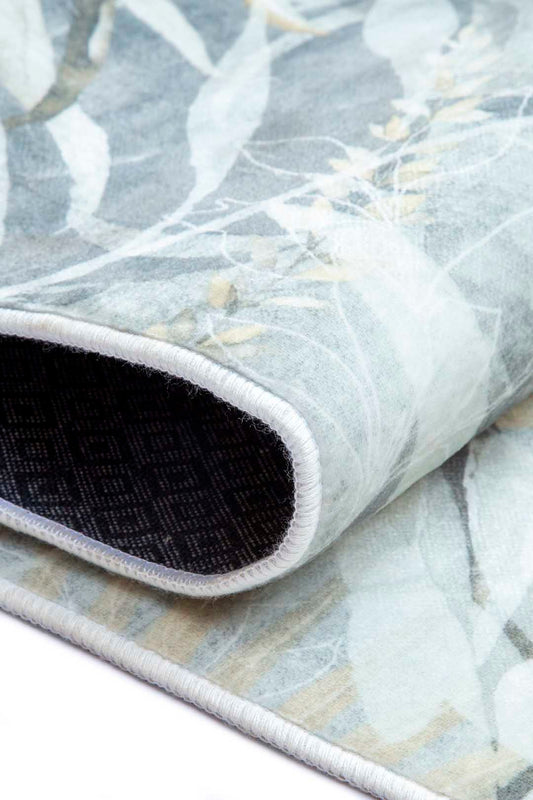 Moderner Teppich mit Blättermotiv Grau Blau – Naturdesign für Wohnzimmer & Flur