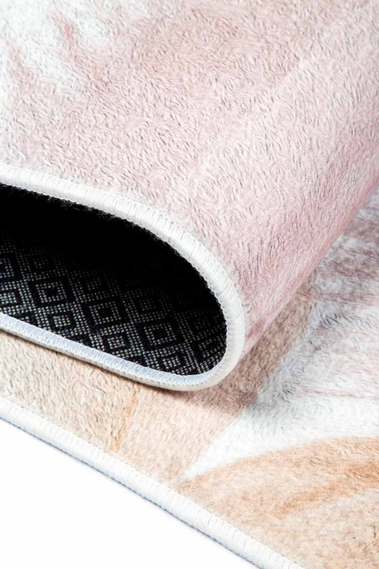 Moderner Teppich mit tropischem Blättermuster – Beige Mint für Wohnzimmer & Schlafzimmer