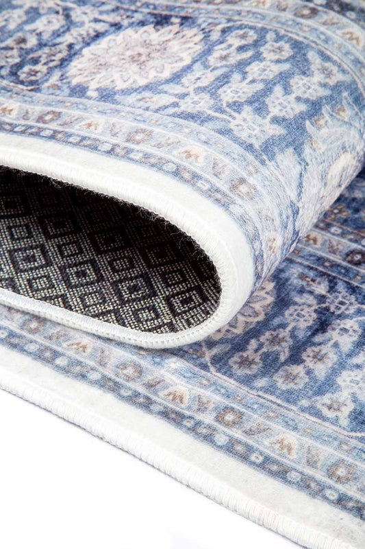Orientteppich Grau Blau – Klassischer Perserteppich mit floralem Muster