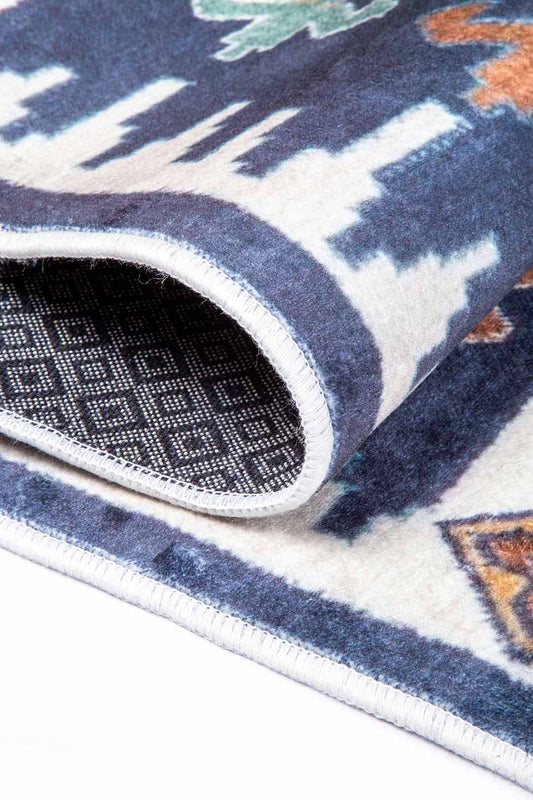 Kilim Teppich Blau Bunt – Ethno Muster im Boho-Stil für Wohnzimmer & Flur