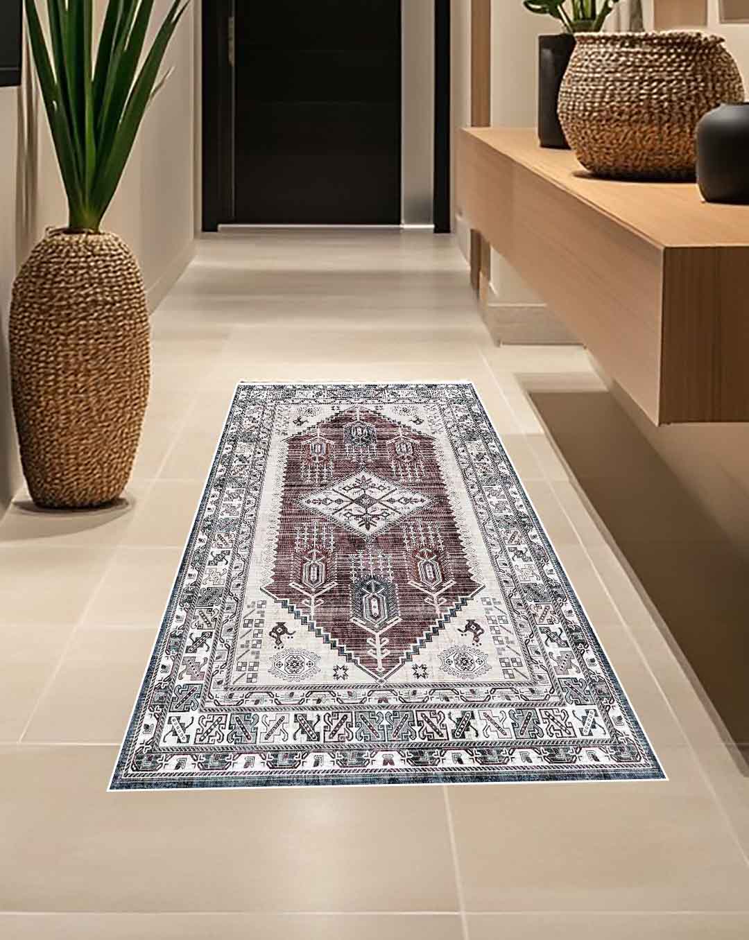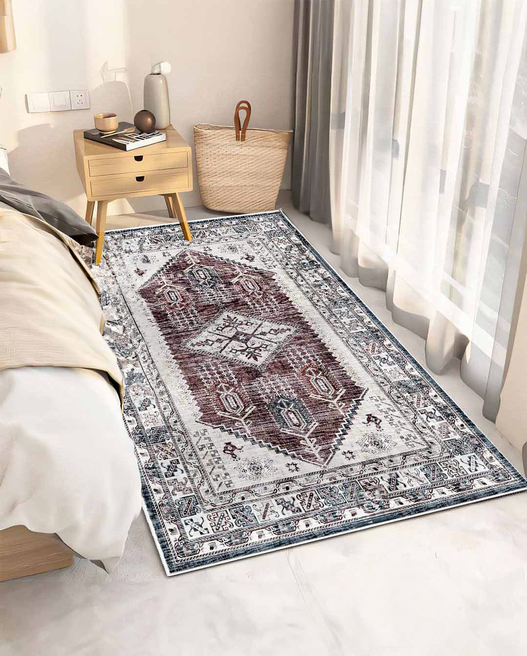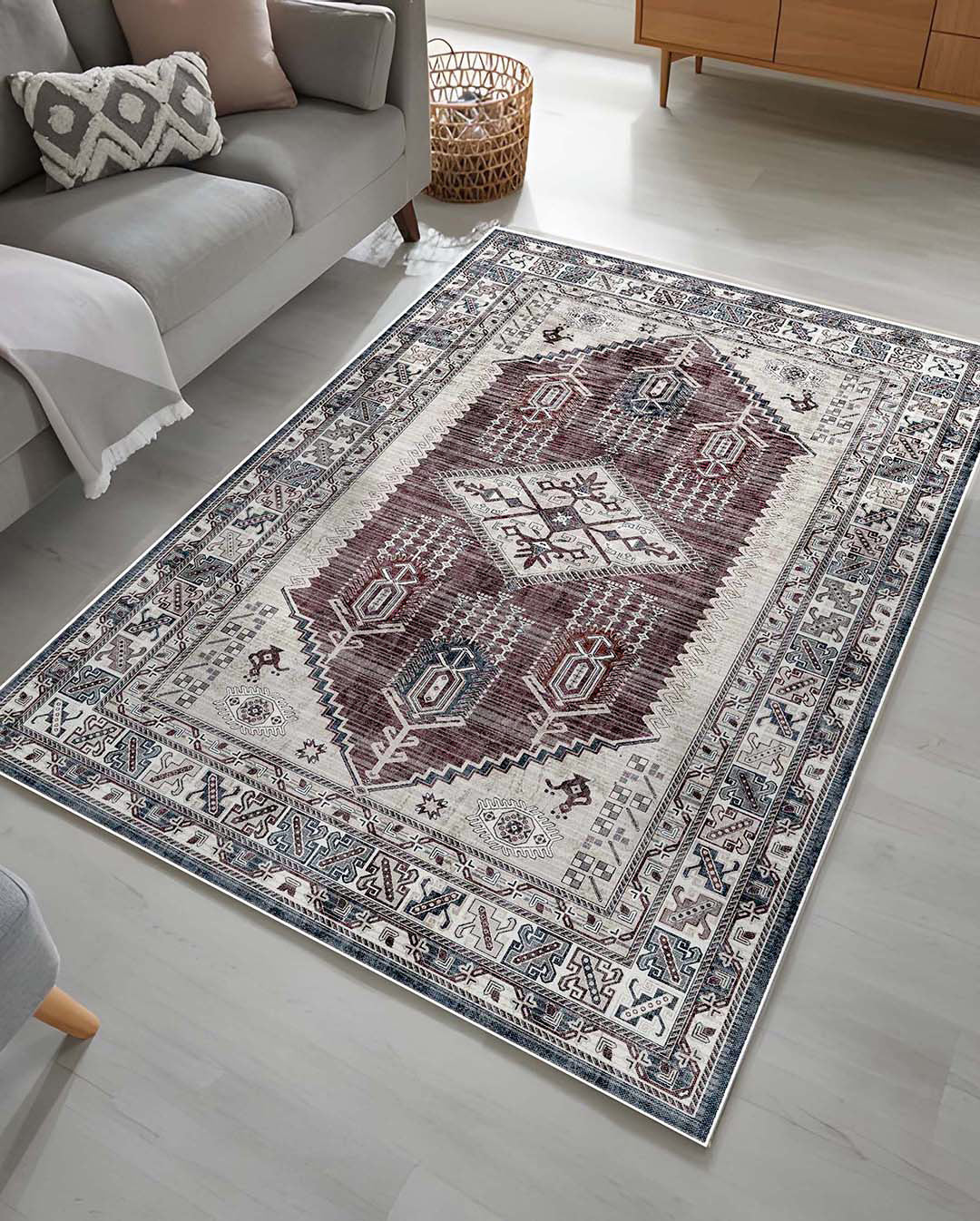 Dark red is a vintage persian new style carpet has light Beige carpet background and mixture of floral and classic curves in the most trending and modern colours mixtures that can unfortunately change area mode and style ,it's the best choice for livingroom carpet , bedroom runners and bedroom carpet and door mat. Easy cleaning make it beats all other carpets as it's washable carpet ,  Enjoy softness touch with the best colours and anti-slip back would make it the best choice ever for high and  medium-traffic zones, kid and pet-friendly carpet and homes.