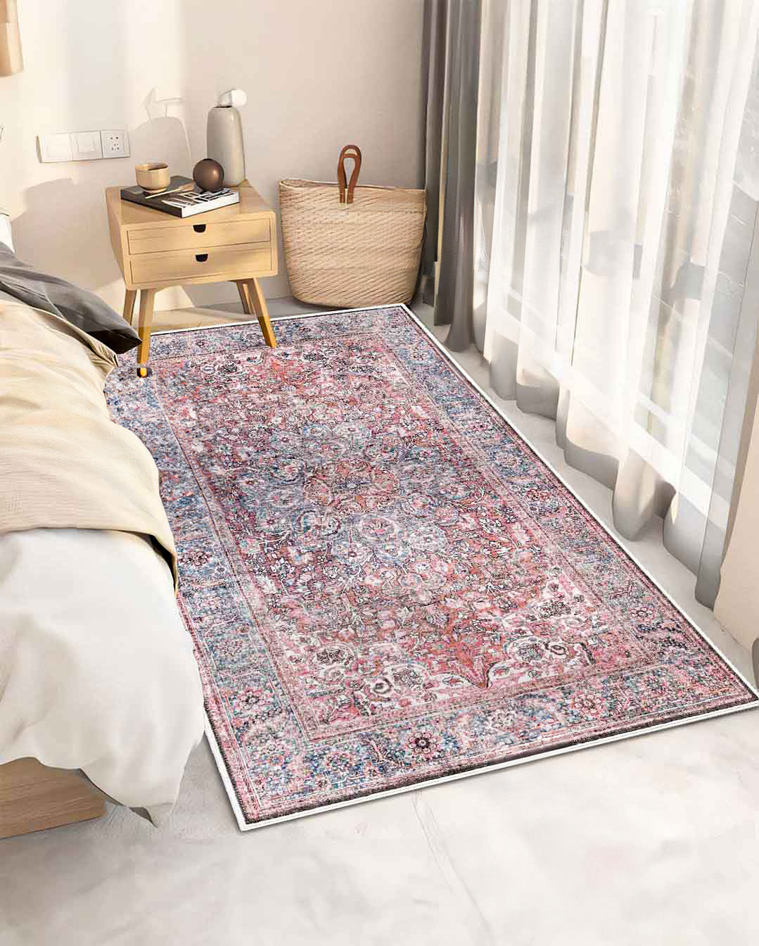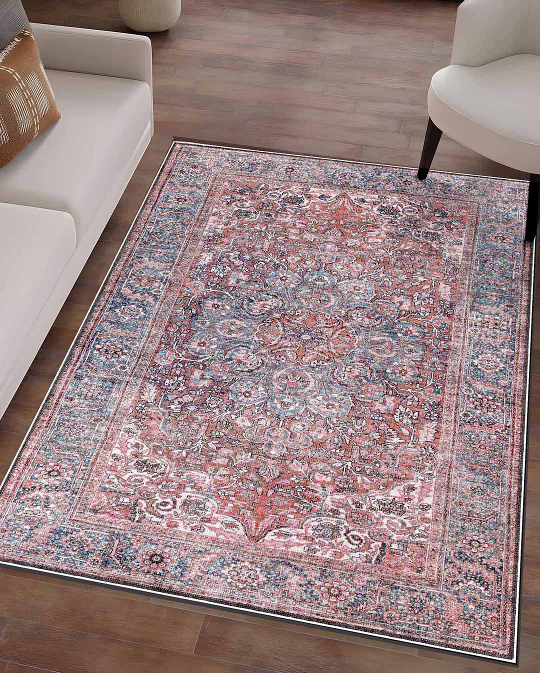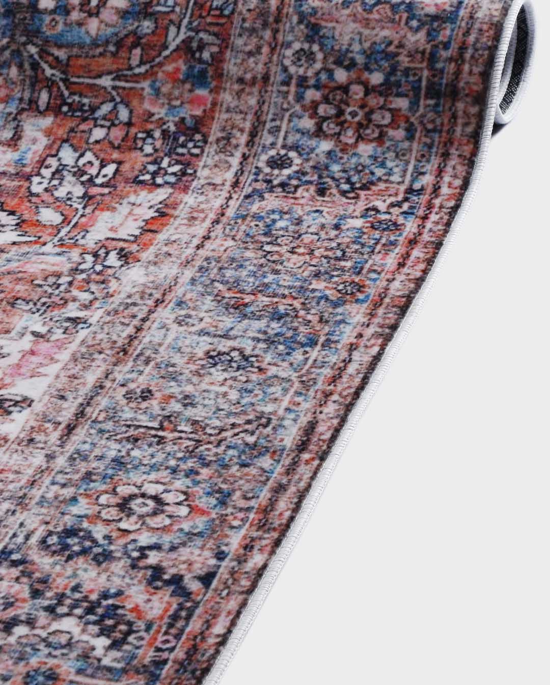 Tomy is a vintage persian new style carpet has light red carpet background and mixture of classic curves in the most trending and modern colours mixtures that can unfortunately change area mode and style ,it's the best choice for livingroom carpet , bedroom runners and bedroom carpet and door mat. Easy cleaning make it beats all other carpets as it's washable carpet ,  Enjoy softness touch with the best colours and anti-slip back would make it the best choice ever for high and  medium-traffic zones, kid and pet-friendly carpet and homes.