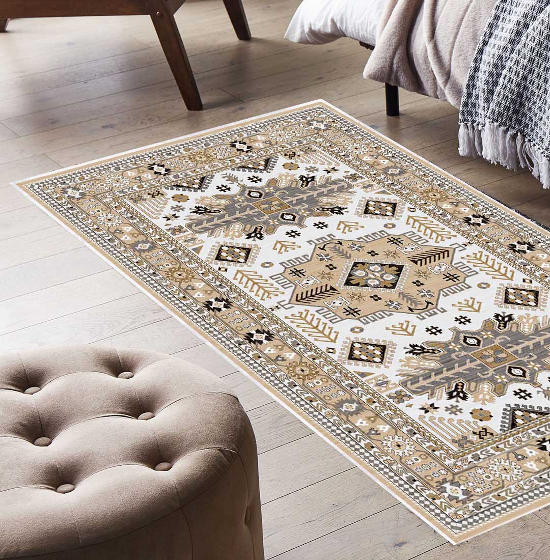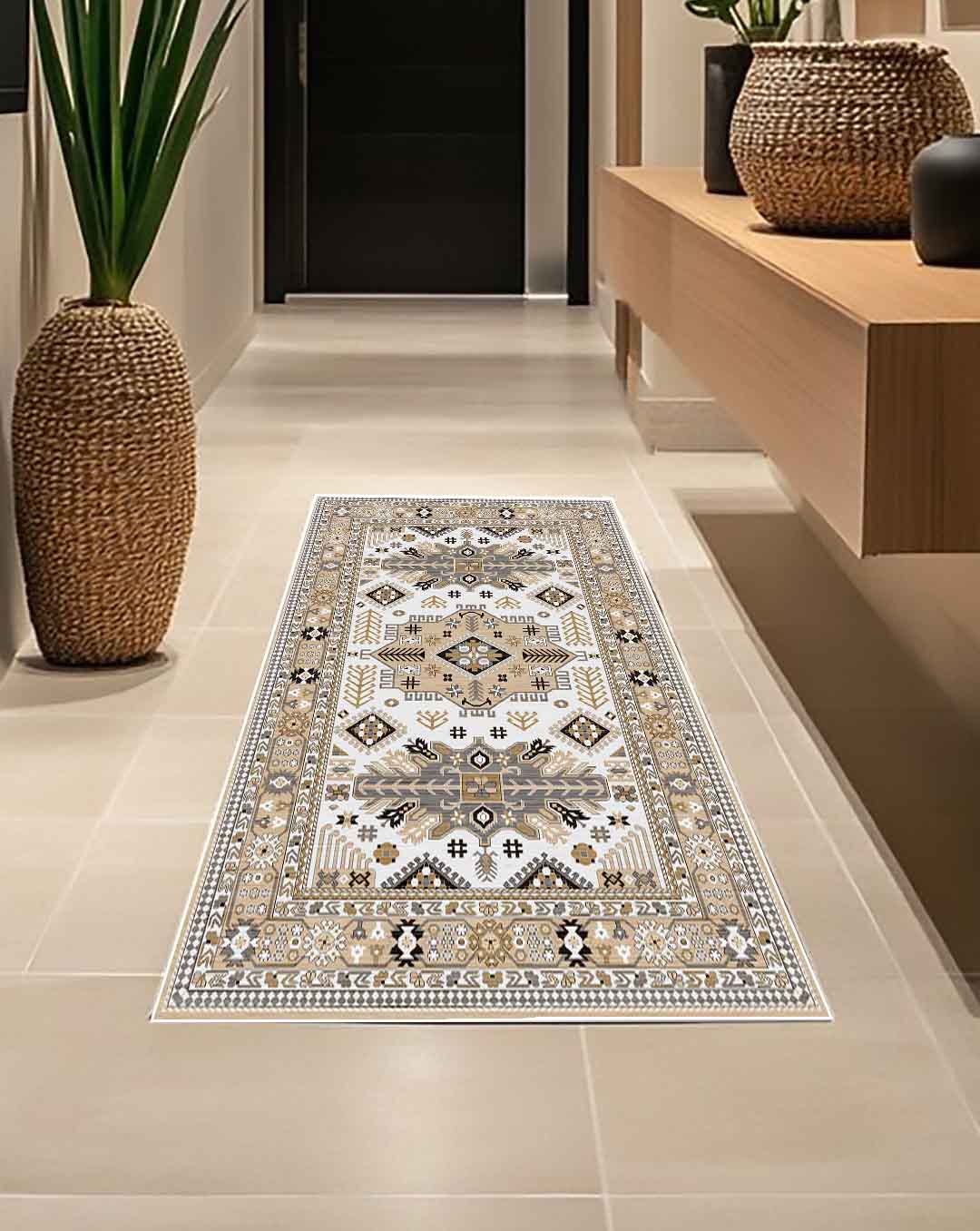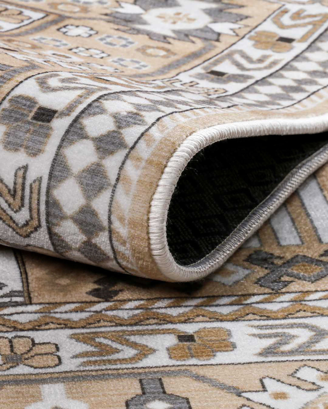 Fedezze fel ennek a geometrikus törzsi szőnyegnek az eleganciáját, magával ragadó mintával, földes bézs és szürke tónusokban! Ideális a modern és hagyományos stílusú terekhez, ez a szőnyeg kiváló minőségű, strapabíró anyagokból készült, így hosszú élettartamot és rugalmasságot biztosít a nagy forgalmú helyeken. Részletgazdag dizájnja mélységet és karaktert ad, így a nappali vagy a hálószobák tökéletes központi eleme.