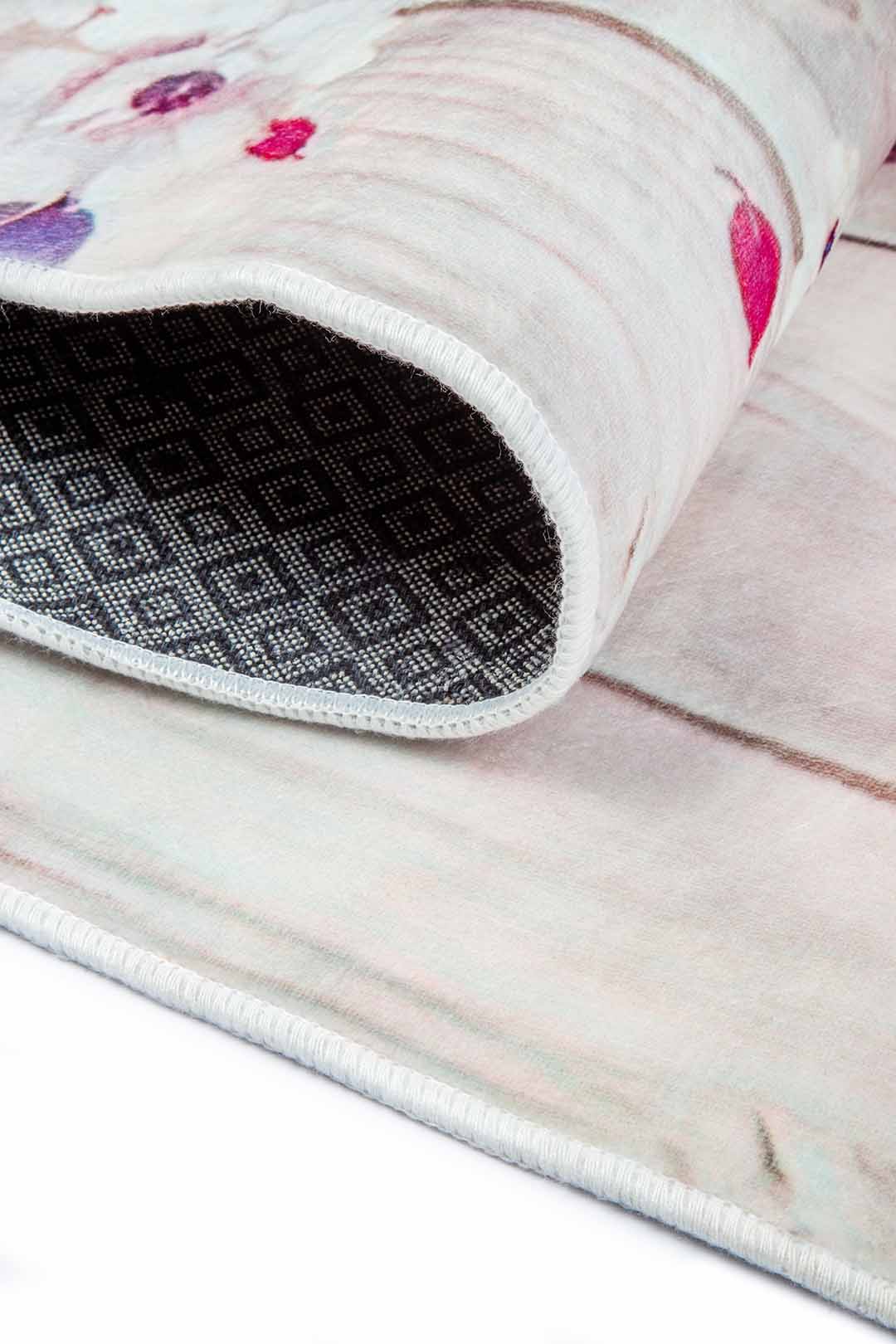 Ez a romantikus szőnyeg fa hatású alapon jeleníti meg a tavasz varázsát: gyönyörű rózsák, finom levelek és lebegő kolibrik díszítik pasztell rózsaszín, lila és bézses árnyalatokban. A részletgazdag virág- és madármotívumok békés, természetközeli hangulatot teremtenek, ideális választás hálószobába, gyerekszobába vagy nőies enteriőrökbe. A szőnyeg puha tapintású, csúszásgátló hátoldallal a biztonságos használatért.