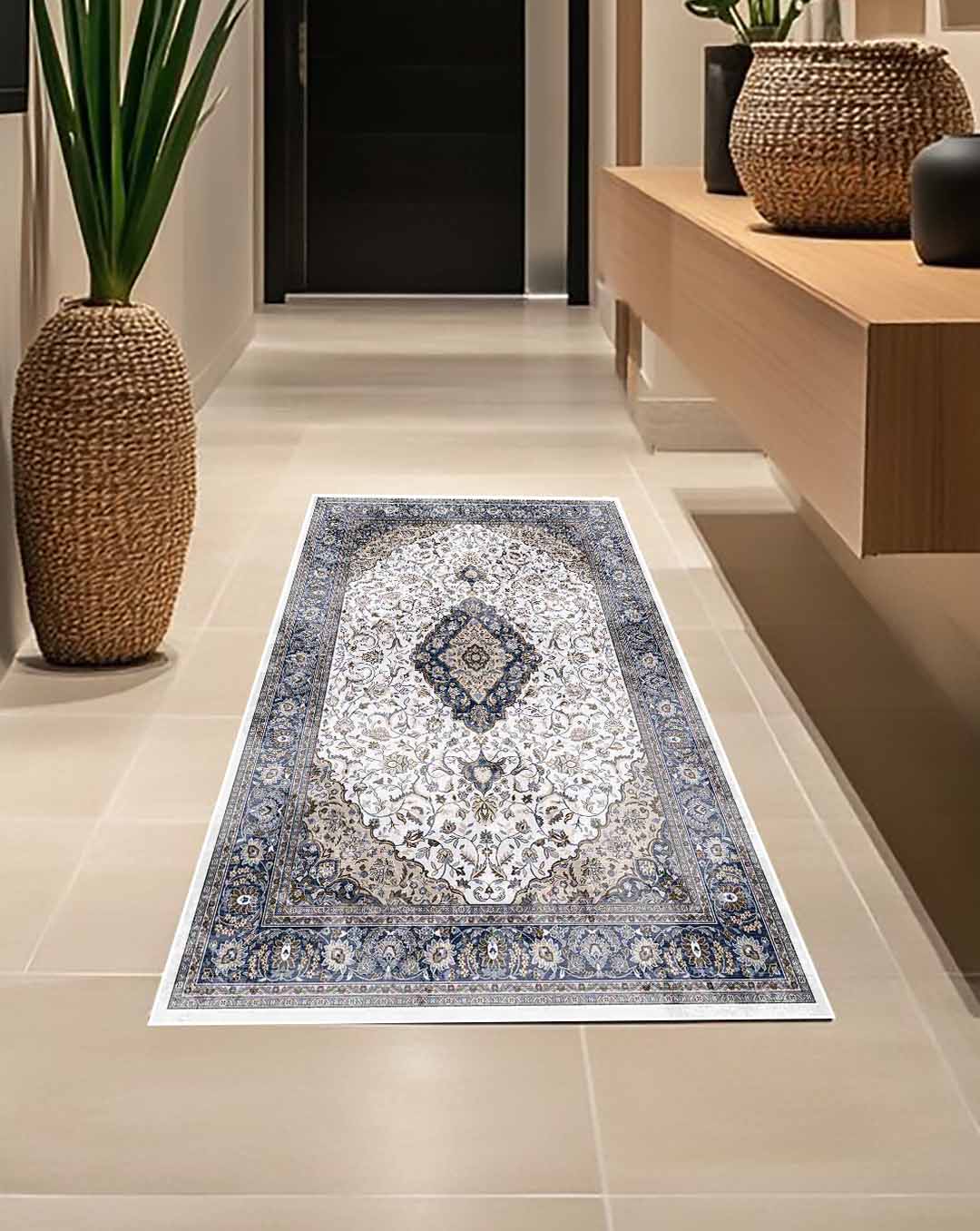 Zaina1 ist ein neuer Vintage-Teppich im persischen Stil mit hellbeigem Hintergrund und einer Mischung aus floralen und klassischen Kurven in den angesagtesten und modernsten Farbkombinationen, die leider die Raumgestaltung und den Stil verändern können. Er ist die beste Wahl als Wohnzimmerteppich, als Läufer und Schlafzimmerteppich sowie als Fußmatte. Er ist waschbar und lässt sich leicht reinigen. Genießen Sie die weiche Haptik mit den besten Farben und die rutschfeste Rückseite, die ihn zur besten Wahl für stark und mittelstark beanspruchte Bereiche, kinder- und haustierfreundliche Teppiche und Wohnungen macht.